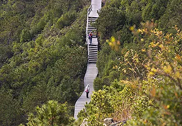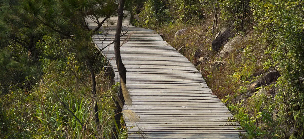 昂平棧道沿途道路有不少由木板建成,依山而建的木梯級,可能是香港行山路線之中獨有。