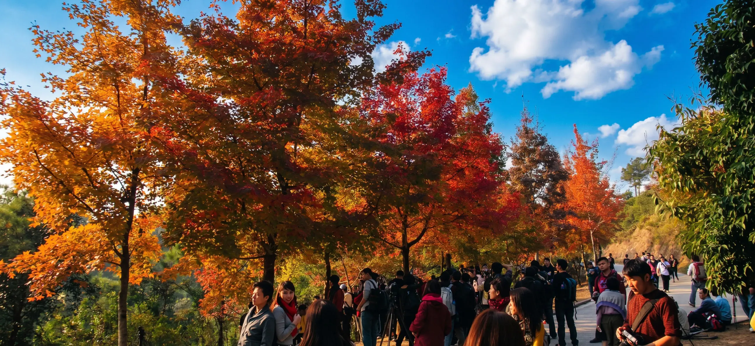 每到冬季都有很多人到大棠欣賞紅葉,到假日時更加人頭湧湧。