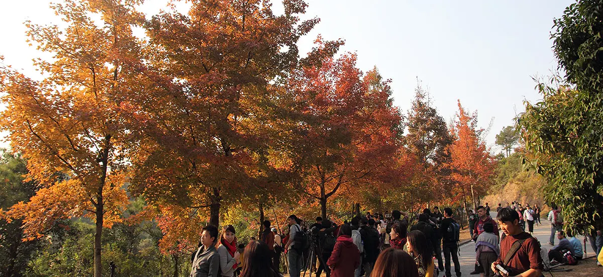 一到秋冬季節,很多遊人走到大棠欣賞紅葉,是香港影紅葉的首選地方。