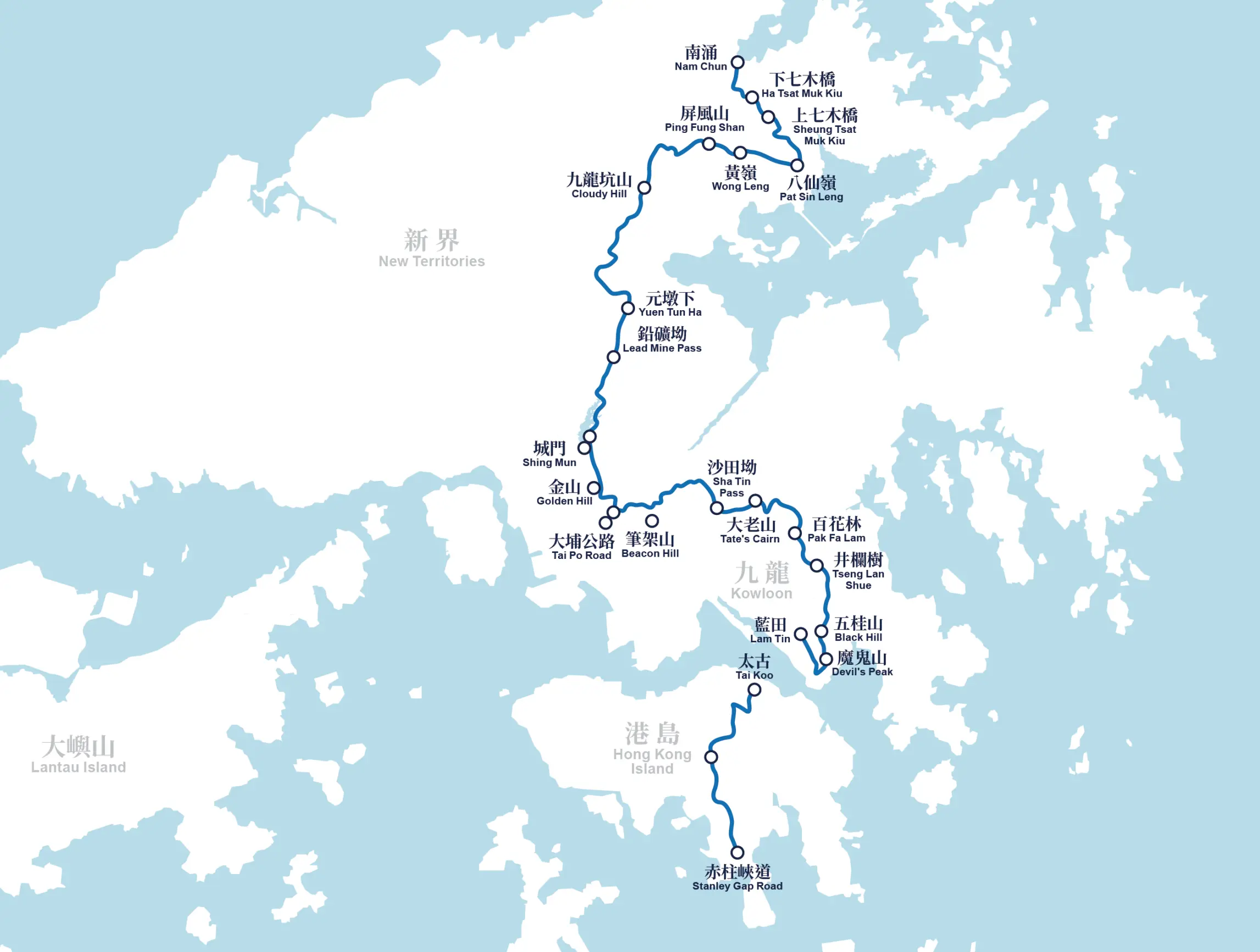 想一次過用雙腳縱貫香港島、九龍及新界嗎?衛奕信徑就是你的答案!這條全長78公里的遠足徑於1996年啟用,是全港唯一由南至北的「超級路線」,帶你由南端的赤柱峽道出發,越過城市,直達北面的南涌。這趟旅程不單是為了紀念熱愛山野的前港督衛奕信爵士,更像是一場由南至北、穿越八個郊野公園的香港地理大發現!